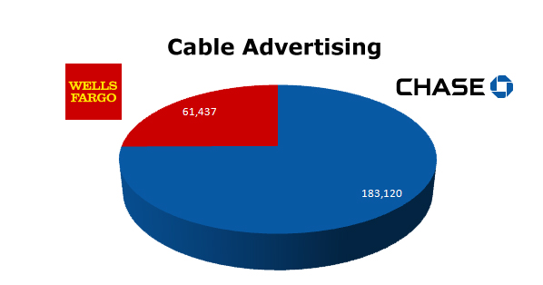 OIn Cable, Chase was clearly the winner here with their "Chase what matters" campaign, running 183,120 spots against Wells Fargo's 61,437