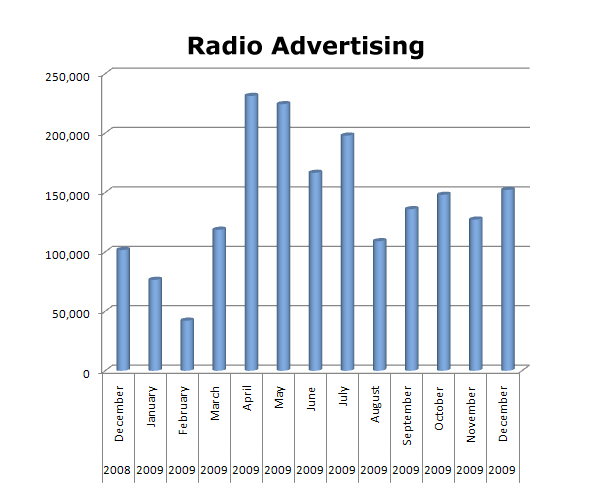 On the radio, THE HOME DEPOT ran hotter in April and May, but did not come back as strong in the fall of 2009. But to put this in perspective, they did run 1,832,092 spots in the last 13 months on radio.