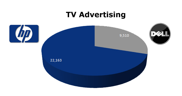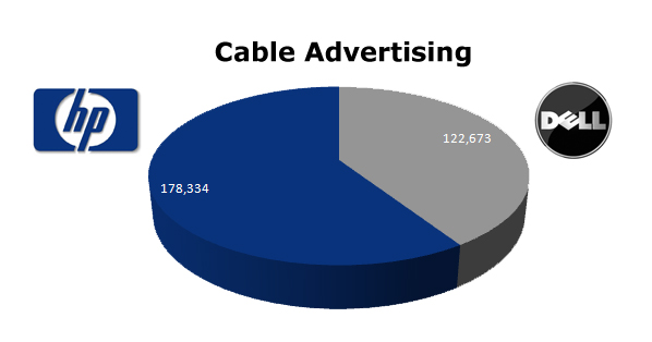 TV advertising is not as important as Cable to these two giants, with HP only running 22,163 ads to Dell's 9,510 spots in the last 13 months.