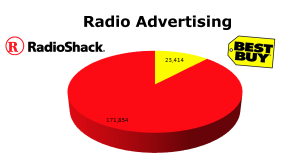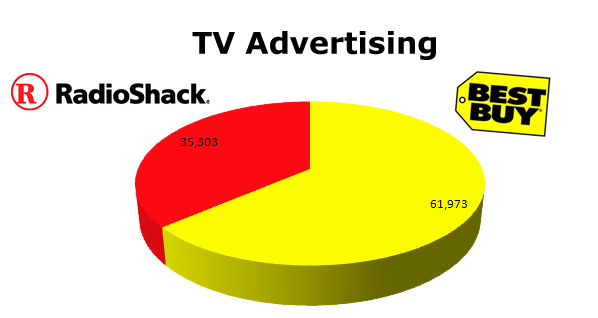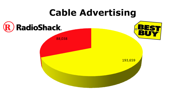 TV parallels cable in many ways, although smaller number of units. Radio Shack ran 35,303 TV ads to Best Buy's 61,973.