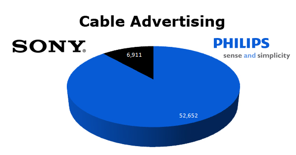 On Cable TV, neither electronics company is working the media hard. In the last 12 months, Sony ran only 6,911 ads to Philips' 52,652 spots.