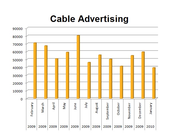 The Verizon advertising philosophy could best be described as "petal to the metal" and it doesn't look like they are going to let up soon. They ran 675,387 spots on the Cable TV that Media Monitors tracks in the last 12 months. In June alone, they ran 80,465 ads.