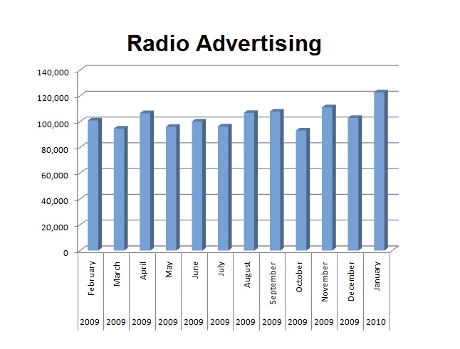 The extend of Verizon's use of radio is rather large. They ran 1,238,624 spots in the last 12 months, with eight of those months having more than 100,000 spots.