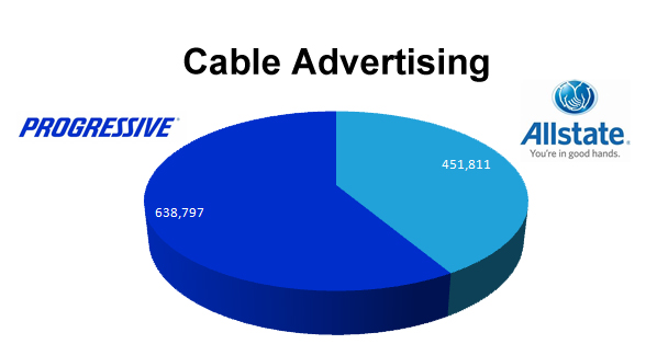 In Cable, Progressive ran 638,797 to Allstate's 451,811 spots.