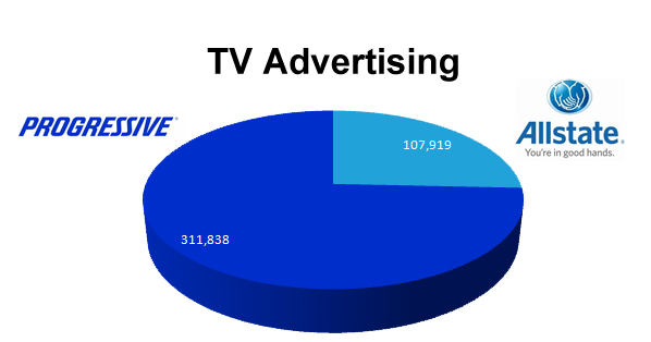On TV, where we seem to see lots of Progressive ads, they totaled 311,838 spots against Allstate's 107,919 ads.
