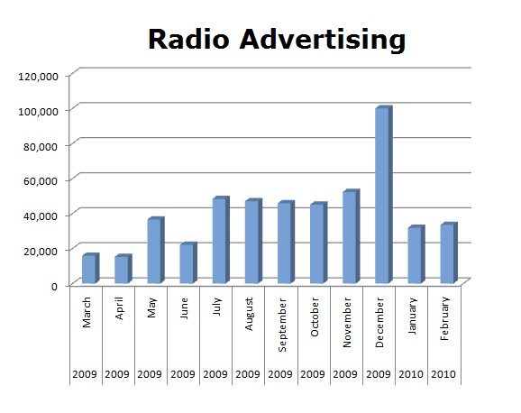 On the radio, Macy's ran 494,243 spots in the last 12 months, with a big spike (100,084) in December.