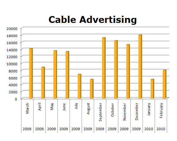 On Cable, Walgreens ran 142,489 spot in the last 12 months. The biggest month was September with 17,226 spots