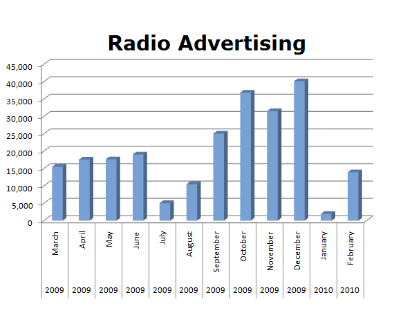 On the Radio, Walgreens have some low months of July and January, but they did run 234,415 spots in the last 12 months. Big month was December with 40,082 ads.