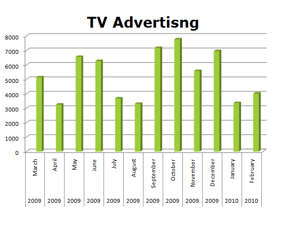 On TV, they were less present, with only 63,131 spots in the last 12 months. There biggest month was October with 7,778 spots.