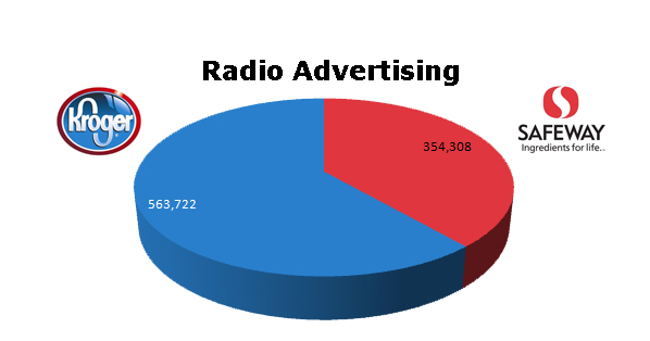 On Radio, both use this medium well, with Kroger ahead 563,722 ads to Safeway's 354,308 spots.