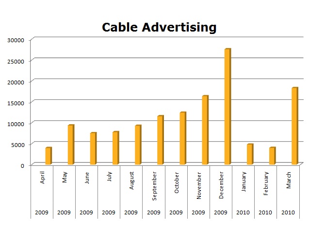 We know that the holiday season drives retail, and Target targets this nicely, with Cable ads starting their impact in the fall and hitting their peak in December. In the last month of last year, Target ran 27,579 spots in December.