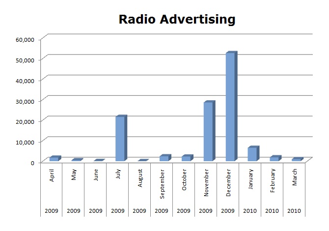 On Radio, 44% of the ads ran in December with a slight spike in July. Target ran a total of 118,821 spots on the radio in the last 12 months.