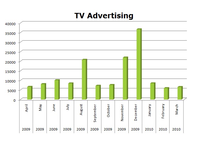 On TV, Target's November (21,966) and December (36,744) were the big months and their the total Target TV spots for the last 12 months hit 148,552 spots.