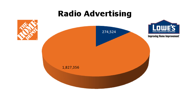 On the radio, The Home Depot smoked Lowe's 1,827,356 to 274,524.