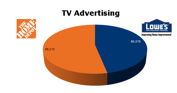 And on TV, The Home Depot ran 98,175 spots to Lowe's 86,376 spots.