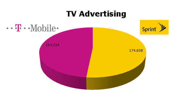 On the TV, this is very close call. T-Mobile totaled 163,724 in the last 12 months, while Sprint hit 174,638 spots.