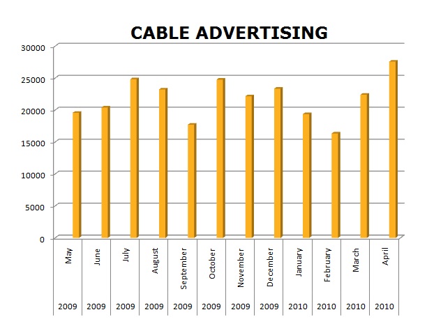 On Cable, Burger King ran 261,623 spots in the last 12 months. Their biggest month was last April with 27,576 ads.