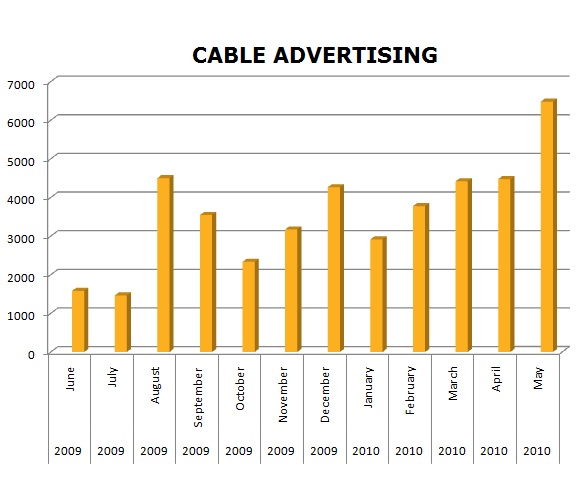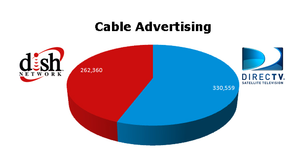 On Cable TV, DIRECTV ran 330,559 spots against the DISH Network’s 262,360 spots in the last 12 months. DIRECTV ran the most in August (48,639), while the DISH Network ran the most in June (40,489).