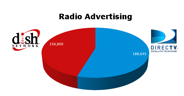 On the radio, DIRECTV was slightly ahead of the Dish. DIRECTV ran 188,645, while DISH ran 156,800 spots.
