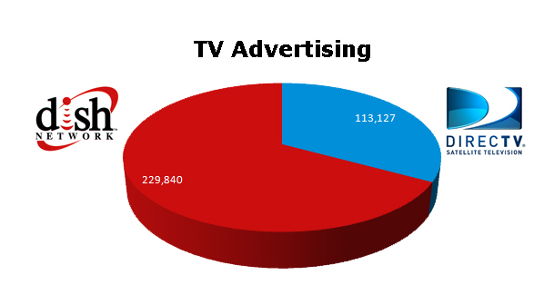 DISH Network take the crown in TV, with 229,840 against DIRECTV’s 113,127 spots in the last 12 months.