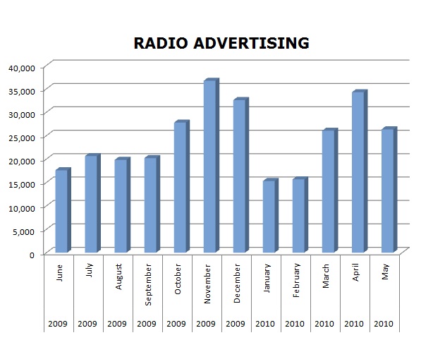62% of all their ads ran on the Radio. With a total of 292,831 spots in the last 12 months, it looks like PetSmart thinks radio is of great value. The biggest months, again were November (36,697), April (34,254) and December (32,585).