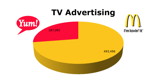 McDonald’s on TV ran 493,496 ads against Yum Brands 187,092 spots.
