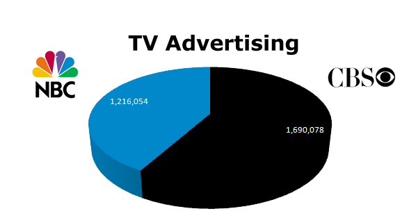 Using TV to promote TV is a natural. NBC ran 1,216,054 ads, while CBS hit 1,690,078 in the last 12 months.
