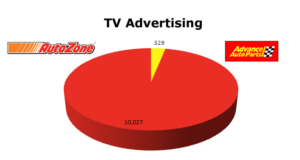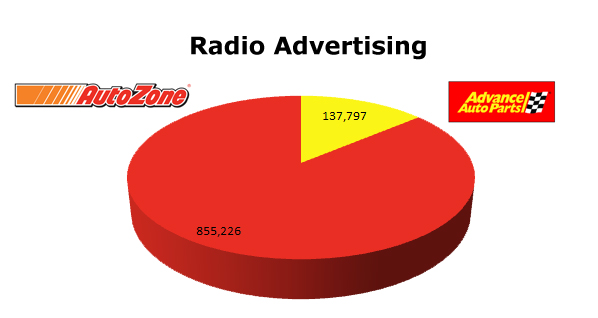 On the radio, AutoZone poured it on with 855,226 ads in the last 12 months, while Advance Auto Parts ran 137,797 ads on radio. AutoZone was over 90,000 spots in the months of April, May and August of this year.