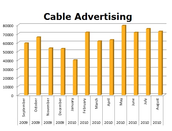 Advance Auto Parts only ran 173 spots on the local cable markets we monitor, while AutoZone ran 19,852 spots. AutoZone’s biggest month was last month August with 6,427 spots.