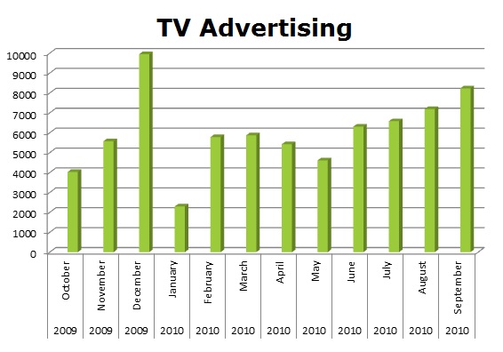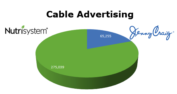 On Cable, Nutrisystem seems to be in control. Jenny only ran about 23% of what Nutrisystem ran. They cleared 275,039 spots, while Jenny Craig ran 65,255 spots.