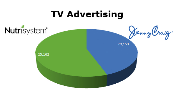 On TV, Nutrisystem has a slight lead with 25,162 spots to Jenny Craig’s 20,153 ads placed in the last 12 months.