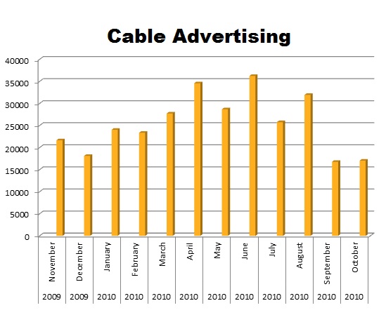 On Cable DIRECTV ran 305,836 ads with large campaigns in April (34,584), June (36,223) and August (31,927).