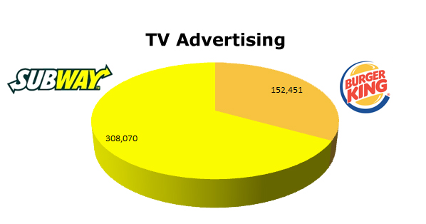 On TV, SUBWAY ran 308,070 spots against Burger King’s 152,451 spots.
