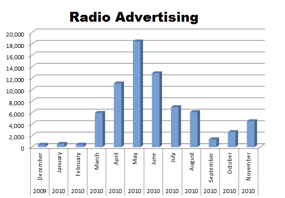 On Radio, they start out in the year a bit slowly, but then peak in May with 18,410 spots. The total number of radio spots for the last 12 months was 71,204.