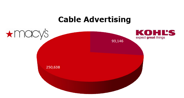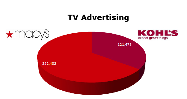 On TV, Macy’s was slightly ahead with 222,402 spots in the last 12 months to Kohl’s 121,473 spots.