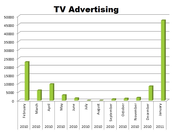 In the last 12 months Intuit has run 172,631 ads on Cable with the largest month being January with 57,498. With their star product TurboTax having great importance this time of the year, it all makes sense, or what they wish is makes the user “cents.”