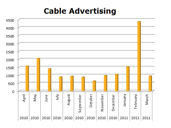 In the last 12 months, MetroPCS ran 17,216 spots on Local Cable. Their biggest month was February with 4,363 spots.