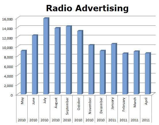 On Radio, Consolidated Credit ran 134,869 spots in the last 12 months. Their biggest month was July with 15,912 spots.