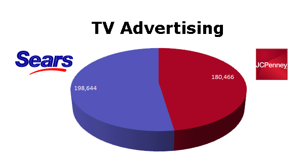 On TV, they are running about even with Sears at 198,644 and JCPenney at 180,466 spots. JCPenney ran the most in last December with 27,653 spot to Sears big December at 33,859 spots.