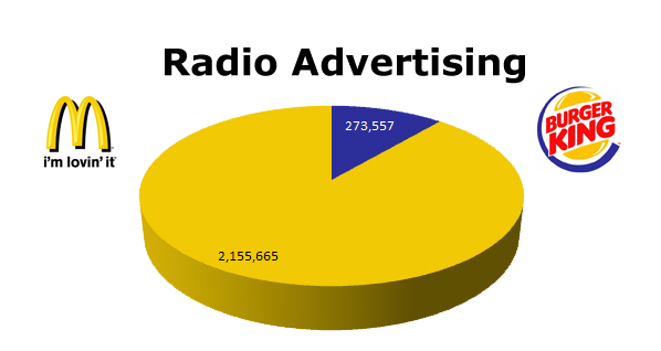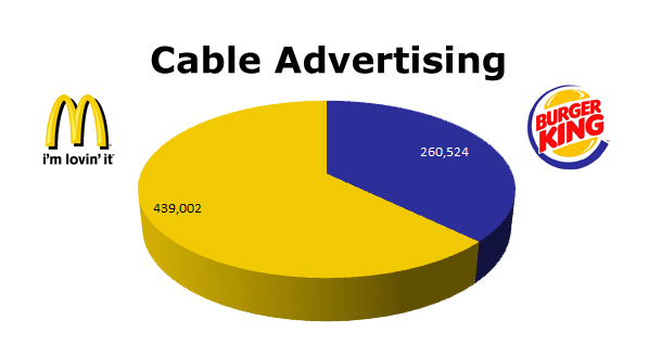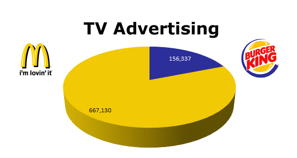On TV, McDonald’s ran 667,130 spots against Burger King’s 156,337 ads in the last 12 months. McDonald’s ran hottest last month with 67,945 spots, while Burger King ran hottest in the month of July 2011 with 19,035 spots.