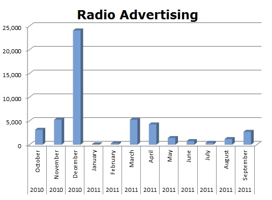 On Radio, TJX only ran 48,870 spots in the last 12 months, with the big spike coming during the holiday season last year with 24,077 spots in December.