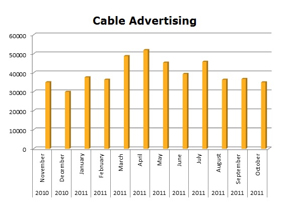 On Local Cable, Clorox ran 478,689 spots in the last 12 months. They had their biggest month in April with 52,017 ads.