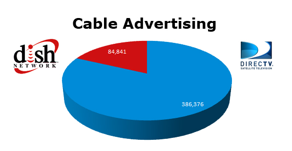 On Cable, DIRECTV ran 386,376 spots in the last 12 months. DISH Network ran 84,841 ads in the same time frame. It is quite interesting that services that are trying to get you to switch from Cable advertising on Cable. DIRECTV’s biggest month on Local Cable was August with 46,248 ads, while the DISH Network ran hottest in February with 18,690 spots.
