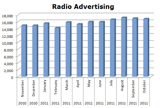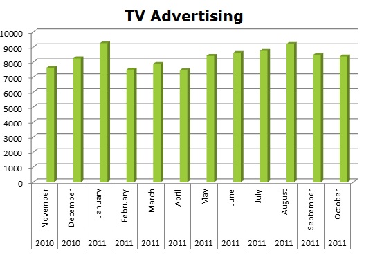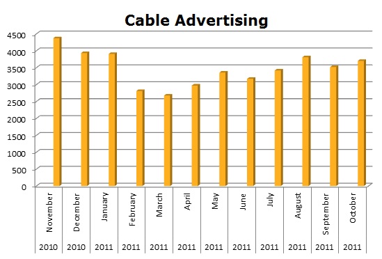 On Local Cable Menards ran a total of 41,622 spots in the last 12 months. The biggest month on Cable was last November (2010) with 4,370 spots.