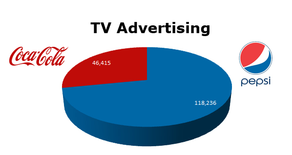On TV, Pepsi cleans Coke’s clock running 118,236 spots against Coca-Cola’s 46,415 spots. Pepsi ran the most spots last February with 17,038 spots, while Coke cleared the most spots in December 2010 with 7,433 spots.