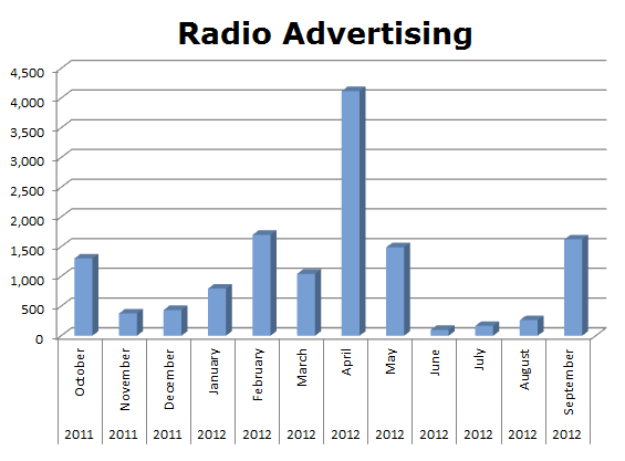 On the Radio, McNeil only ran 13,405 spots in the last 12 months with their biggest month being April 2012 when they cleared 4,117 ads.