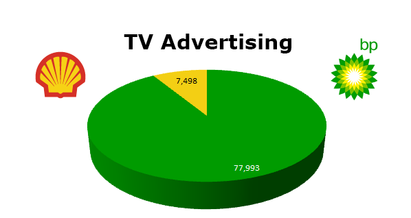 According to their annual report, BP produced revenues of $234.25 billion with a net income of $16.03 billion, which represented a 21.7% growth in sales. They have 83,400 employees. Overall, Shell ran 35.46% as many spots as BP in all three media.