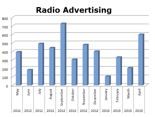 On the Radio, PetSmart ran only 4,651 spots in the last 12 months. Their biggest month was September 2012 with 727 spots nationwide and their smallest month was January 2013 when only 105 spots ran.